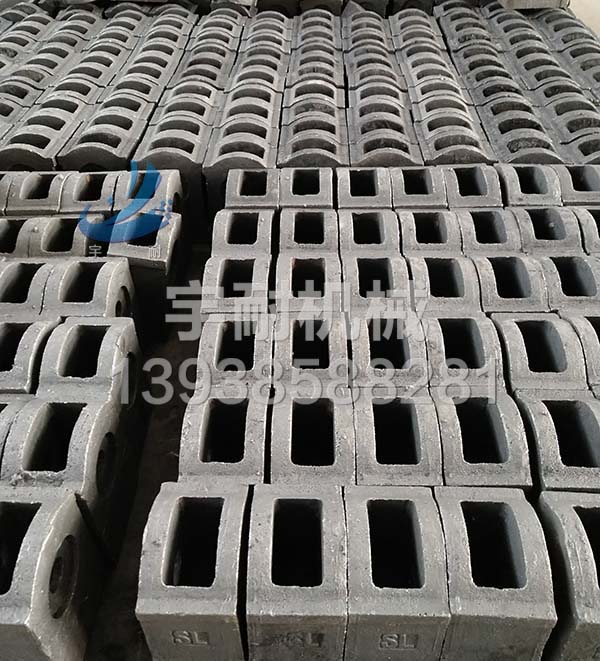 可逆錘式破碎機(jī)是冶金、建材、化工和水電等工業(yè)部門(mén)中細(xì)碎石灰石、煤或其他中等硬度以下脆性物料的主要設(shè)備之一,大特點(diǎn)就在于轉(zhuǎn)子可正反轉(zhuǎn),提高了錘頭的利用率,并且對(duì)水分較大的物料也能夠破碎,是集錘破和反擊破優(yōu)勢(shì)于一體,具有破碎比大,生產(chǎn)能力高,產(chǎn)品粒度均勻等特點(diǎn)。由于其不同于普通破碎機(jī)的設(shè)計(jì)理念,結(jié)構(gòu)上采用了大轉(zhuǎn)子、短銷(xiāo)軸、可逆式旋轉(zhuǎn)組合的錘頭,這樣使錘頭具有打擊力度大,操作維修方便,運(yùn)行成本低等優(yōu)點(diǎn)。我公司生產(chǎn)的雙合金耐磨錘頭頭部采用高鉻合金材料,錘柄采用韌性較好的低合金鋼材料,利用熱復(fù)合將兩種不同性能和功效的材料在液液狀態(tài)下使其熔融為一體,復(fù)合面積可達(dá)100%,解決了鑲合金和兩次復(fù)合澆鑄錘頭容易出現(xiàn)的斷裂、掉塊、掉頭等現(xiàn)象,提高了錘頭使用的安全性。